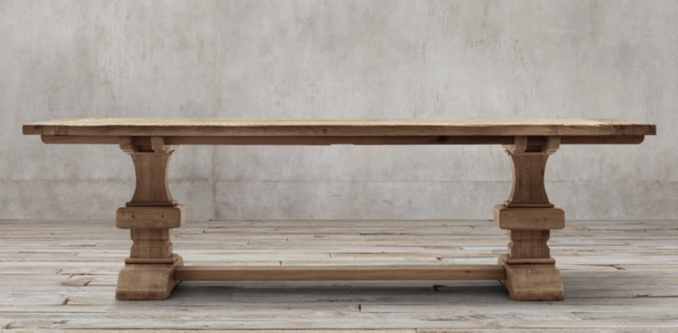 This variation on the trestle table provides the same classic look with a slightly lighter footprint. RH will charge you nearly $4000 for this table (!!!), or you can purchase elsewhere and save thousands.